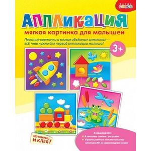 Яркая и выразительная аппликация с простыми и веселыми картинками. Для работы не нужны ни клей, ни ножницы. В комплекте — мягкие детали, вырубленные из объемного ЭВА на клеевой основе, которые легко приклеиваются на картинку-основу. Сама картинка небольшого размера, что поможет малышу легко справиться с работой. В результате получится прекрасная композиция — первая аппликация малыша! В набор входят четыре яркие картинки.