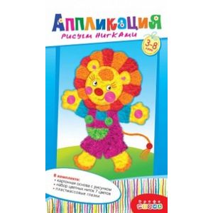 В наборе: цветная основа с рисунком, акриловые нитки (7 цветов), декоративные элементы на самоклеящейся основе (глазки), цветная листовка-образец.