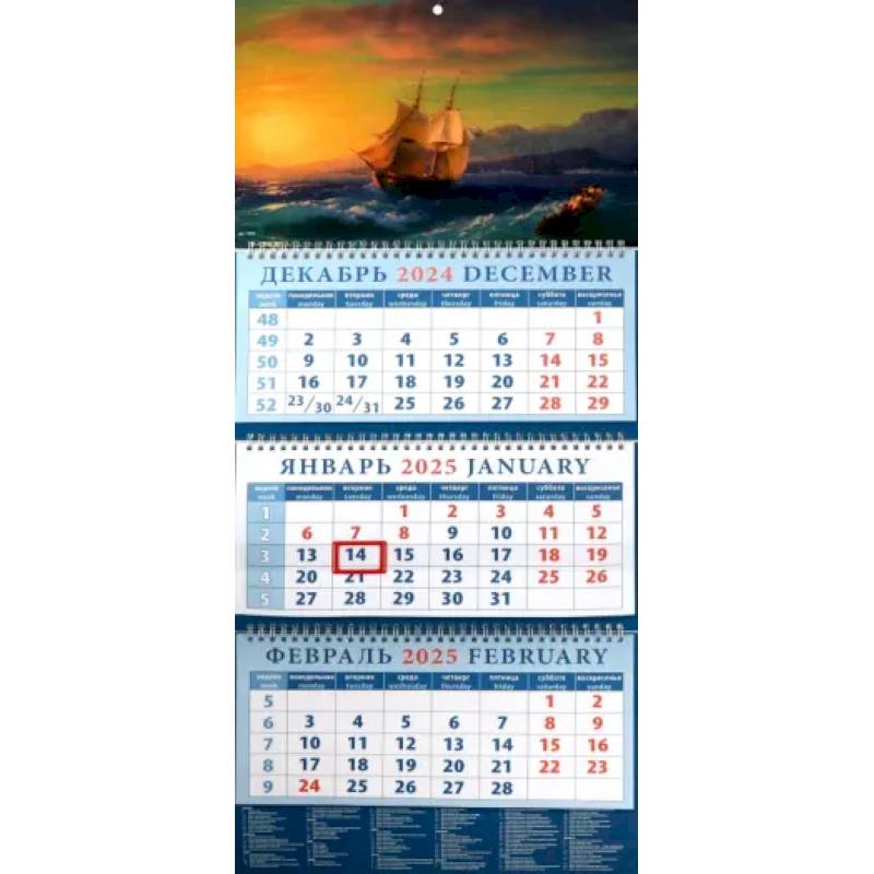 —Календарь квартальный на 2025 год Корабль на закате у мыса Кап-Мартен