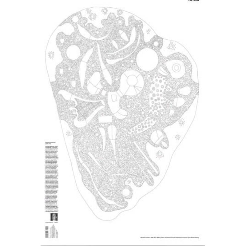 Великий художник Василий Кандинский (1866–1944) родился в Москве. С отличием окончил юридический факультет Московского университета, однако к 30-ти годам принял решение посвятить жизнь искусству. Переехав в Мюнхен, знакомится с немецкими экспрессионистами, обучается живописи в Академии художеств. Ведёт активную преподавательскую и выставочную деятельность как в России, так и за рубежом. Утверждает себя в качестве теоретика искусств, участвуя в работе школы BAUHAUS. В основе его новаторской концепции «ритмического» использования цвета в живописи лежит идея духовного содержания искусства. Отказавшись от импрессионизма в пользу абстракции, художник раз за разом наполняет свои картины красочным созвучием ритмов пятен, точек, линий и символов. Глубоко веря в родство всех видов искусства, мастер выделяет особенную связь между музыкой и живописью. Каждая его работа сродни музыкальной симфонии. Живописная работа «Пёстрый ансамбль» одна из самых многодельных в творчестве художника, её графика насчитывает 10485 элементов. Плакат-раскраска полностью повторяет графическую форму картины. Раскрашивая изображение, вы можете либо попытаться повторить цветовую композицию оригинала, найдя его изображение в Интернет, либо предложить свою цветовую импровизацию.