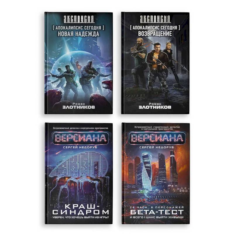 Когда виртуальность угрожает реальности  'Апокалипсис сегодня. Возвращение' На беззащитную Землю обрушились полчища монстров из другого мира. Выжившие люди яростно защищаются, но могущественных чудовищ все больше, а умелых охотников на чудовищ все меньше… Система, которая играет с обеими сражающимися расами, откидывает опытного бойца Скипа в самое начало – за несколько месяцев до вторжения монстров. Пользуясь своими знаниями и навыками, Скип имеет возможность подготовиться к грядущему Апокалипсису.  'Апокалипсис сегодня. Новая надежда' Бывший хант по кличке Скип по-прежнему противостоит полчищам агрессивных чудовищ, которые приходят на Землю из другого мира. На этот раз ему удалось прокачаться до очень высокого уровня, что позволяет бросать вызов самым могучим тварям, прорвавшимся через Врата.   'Версиана. Бета-тест' Шестерым победителям лотереи достается уникальная возможность протестировать новую игру — целых 24 часа полного погружения в виртуальную копию Москвы, синхронизированную с Москвой настоящей! Однако любая попытка разлогиниться, а также гибель персонажа в игровом пространстве неминуемо приведут к смерти игрока в реале. У шестерки «счастливчиков» есть всего сутки, чтобы найти выход из ситуации.  'Версиана. Краш-синдром' В Версиану ринулись толпы игроков. Вседозволенность и безнаказанность — неужели это всё, что интересует их в виртуальном пространстве? А шестерых «счастливчиков», чудом избежавших гибели, уже поджидает новый враг.