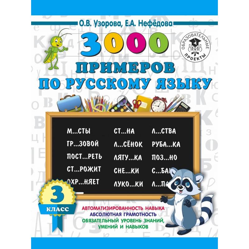 Пособие содержит 3000 примеров на повторение и закрепление основных правил орфографии. Оно охватывает всю программу 3 класса по русскому языку.